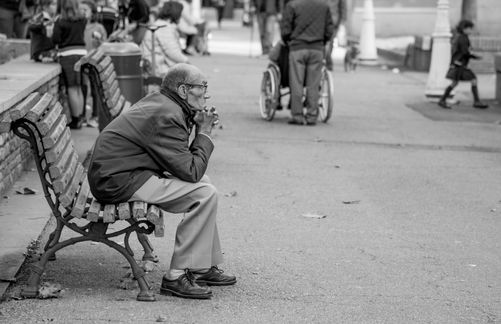 Aber ich möchte nicht dabei stehen bleiben, mein Herz wird berührt von diesen anderen, stillen Ereignissen. Der Blick eines Menschen dans le vague – ins Unscheinbare, Uferlose, Unendliche; der aufmerksame Zuhörer, das Paar, das sich mit einem Blick begegnet und wenigstens in diesem einen Moment ganz Liebe ist, der Mann, der auf nichts mehr zu warten scheint, die alte Frau, die ihren Mann nach 50 Jahren mit soviel Güte mustert - das sind die Held:innen aus meinem eigenen Epos. Und das versuche ich zu zeigen auf meinen Bildern. Und darauf richtet sich meine Aufmerksamkeit auch ohne Kamera.